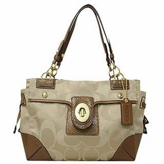 Coach Coho Khaki Sateen Signature Peyton Carryall Satchel Bag Medium - Coach 14507KHA.